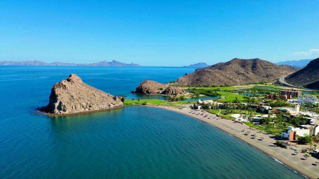 Loreto Bay is a seaside, master-planned community in Nopoló, just south of the historic town of Loreto. It’s known for its walkable design, colorful homes, and landscaped flagstone lanes that wind between courtyards, fountains, and pocket gardens.