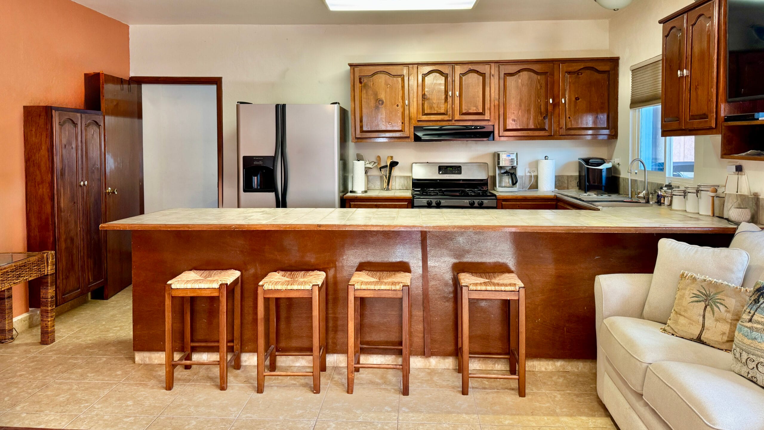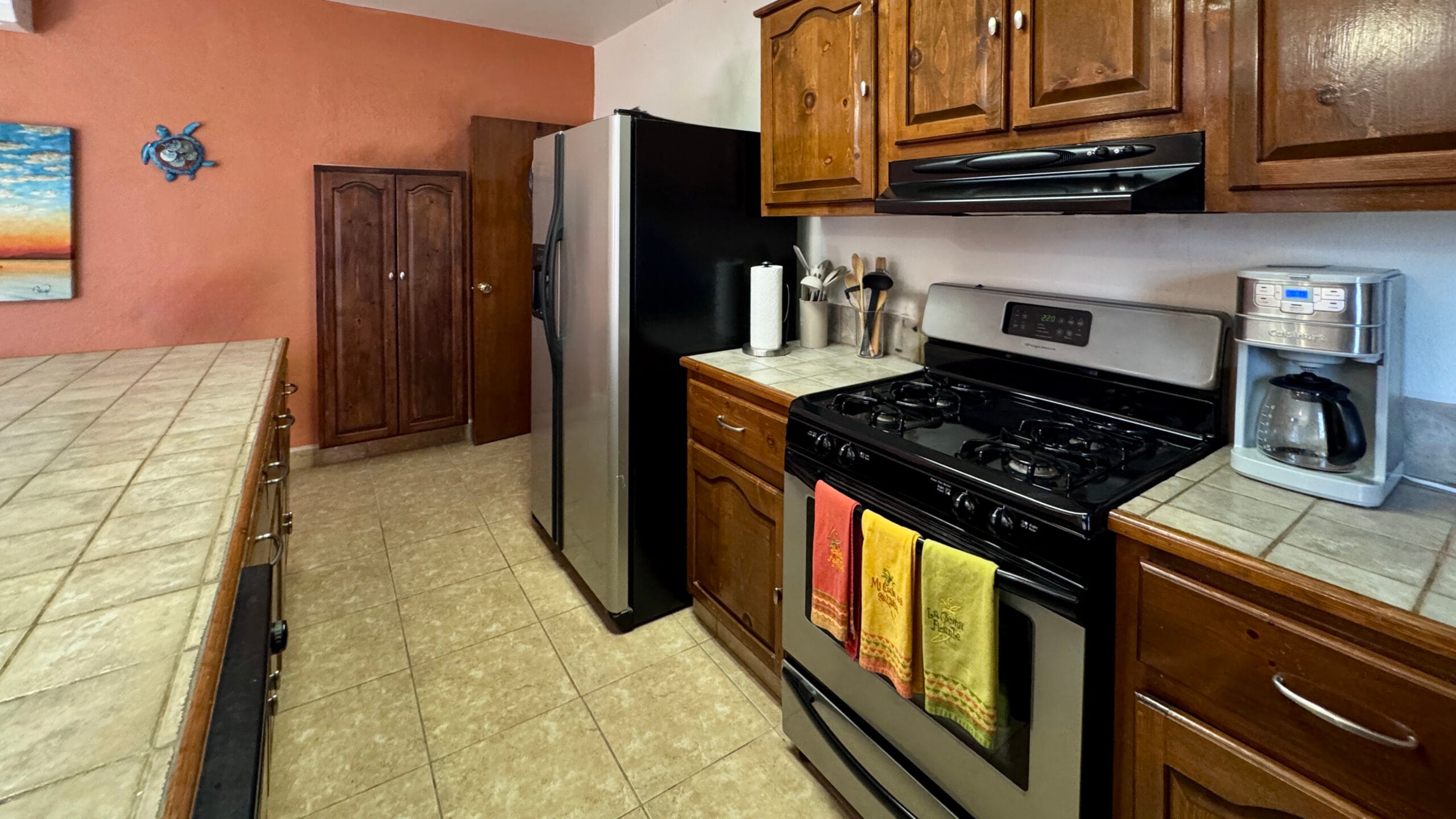 - A practical, well-equipped kitchen with four-burner gas range and refrigerator, ready for everything from quick breakfasts to fresh-catch dinners.