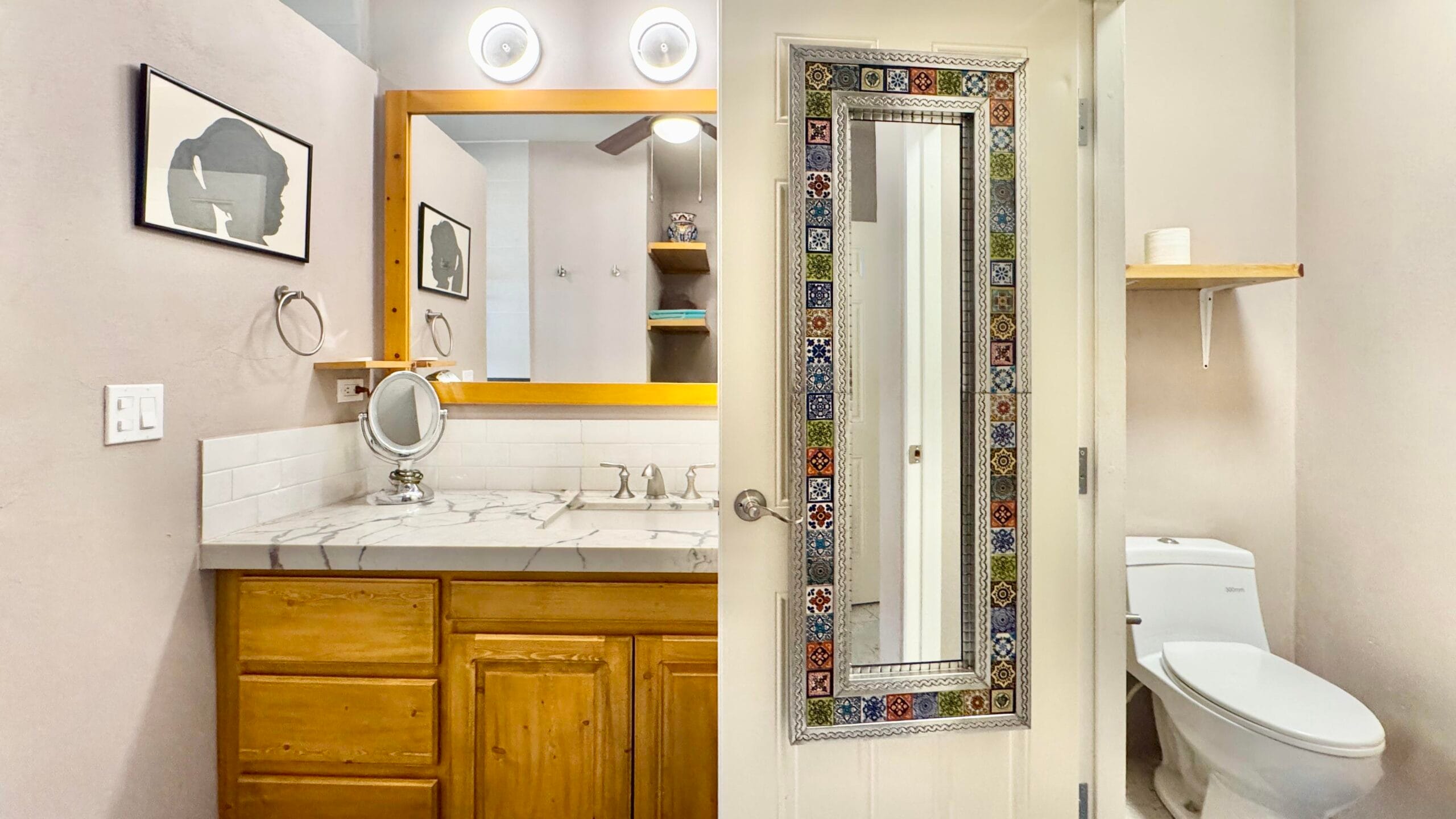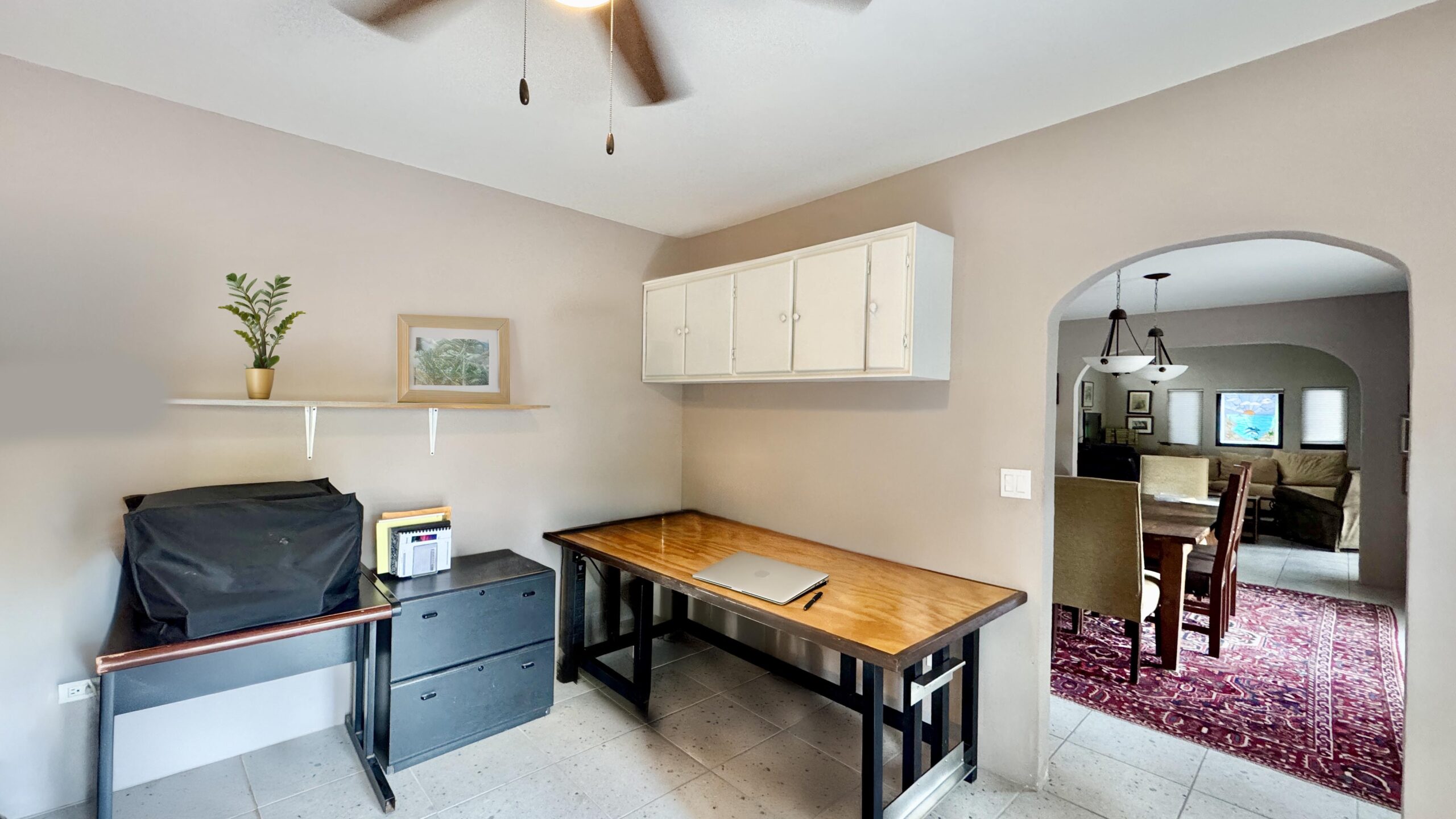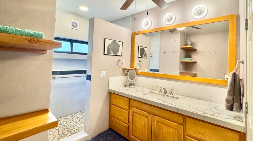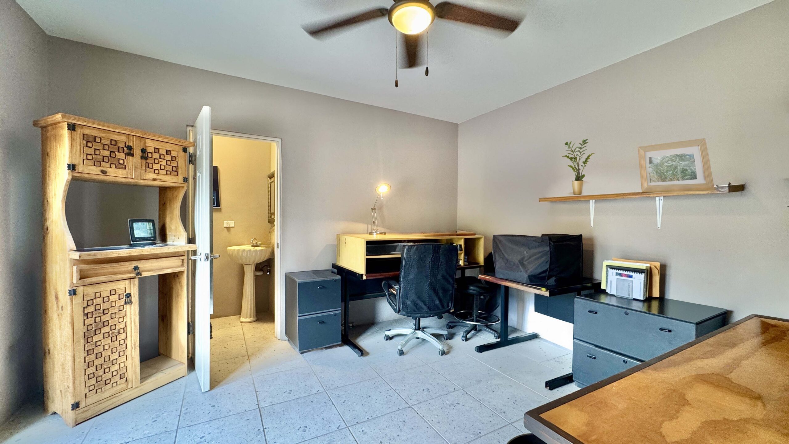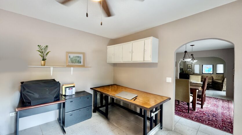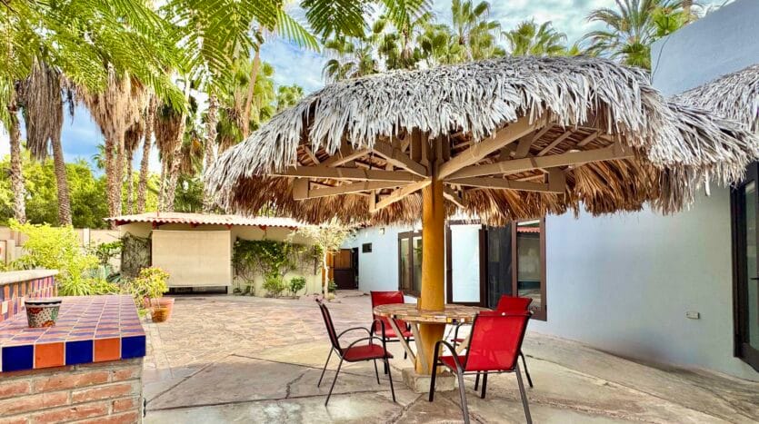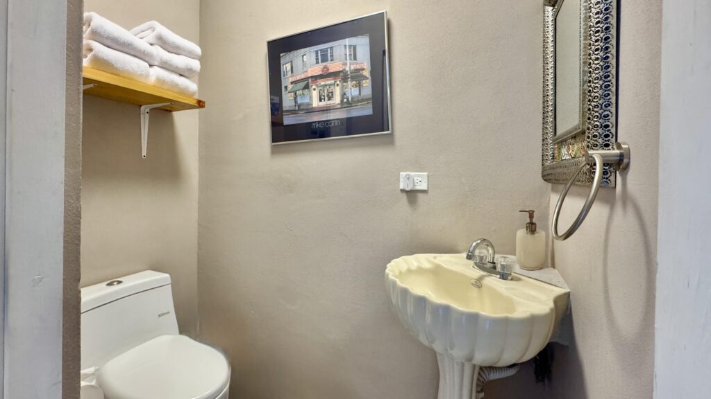 While the main home is configured as a one-bedroom residence, the fully independent guest casita, complete with its own bathroom and walk-in closet, effectively creates a functional two-bedroom, two and a half-bath layout, ideal for visiting family, rental use, or extended stays.