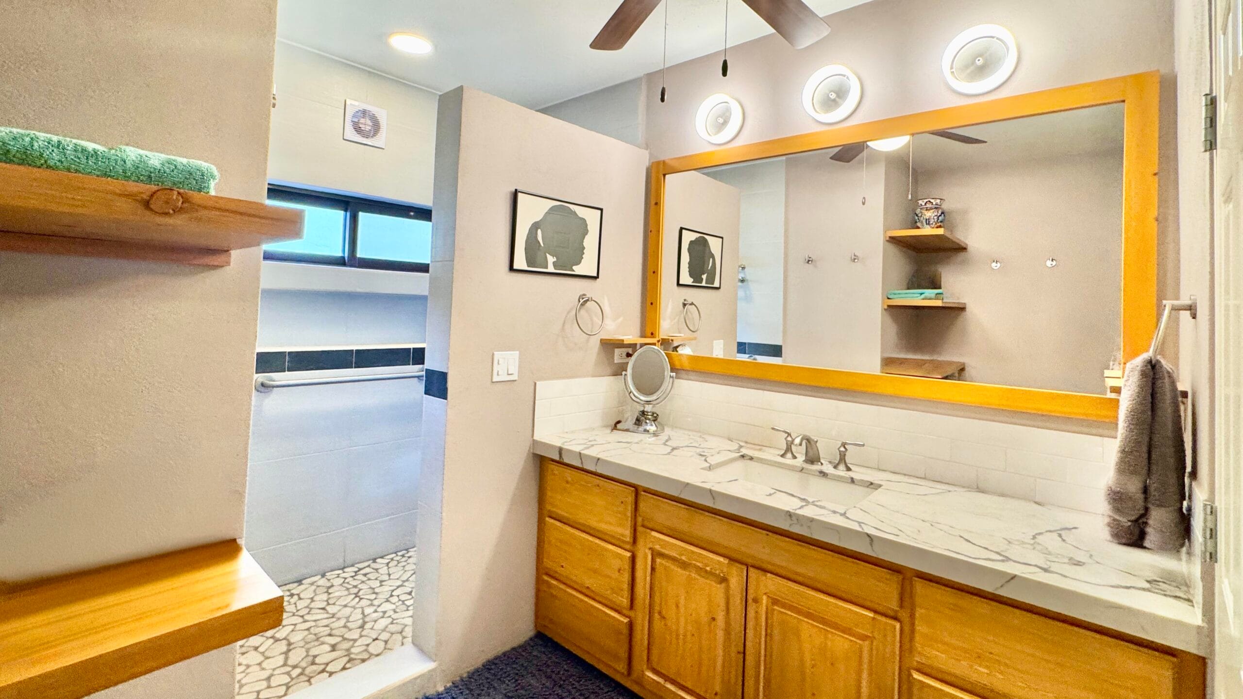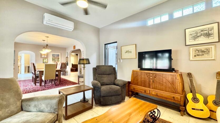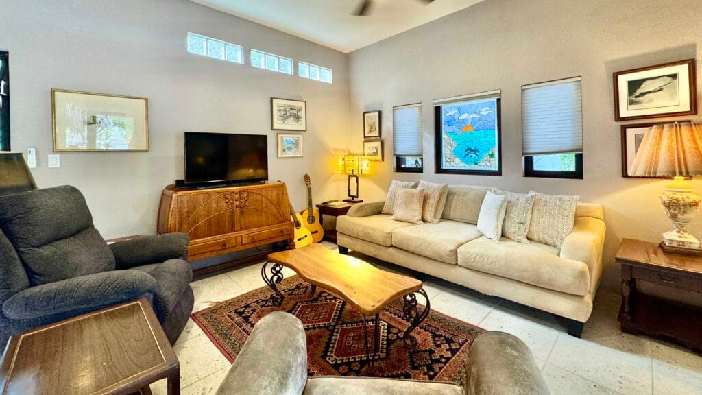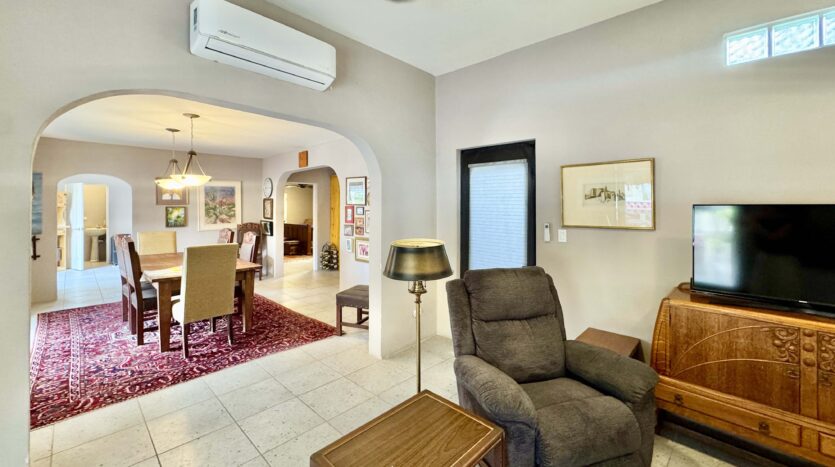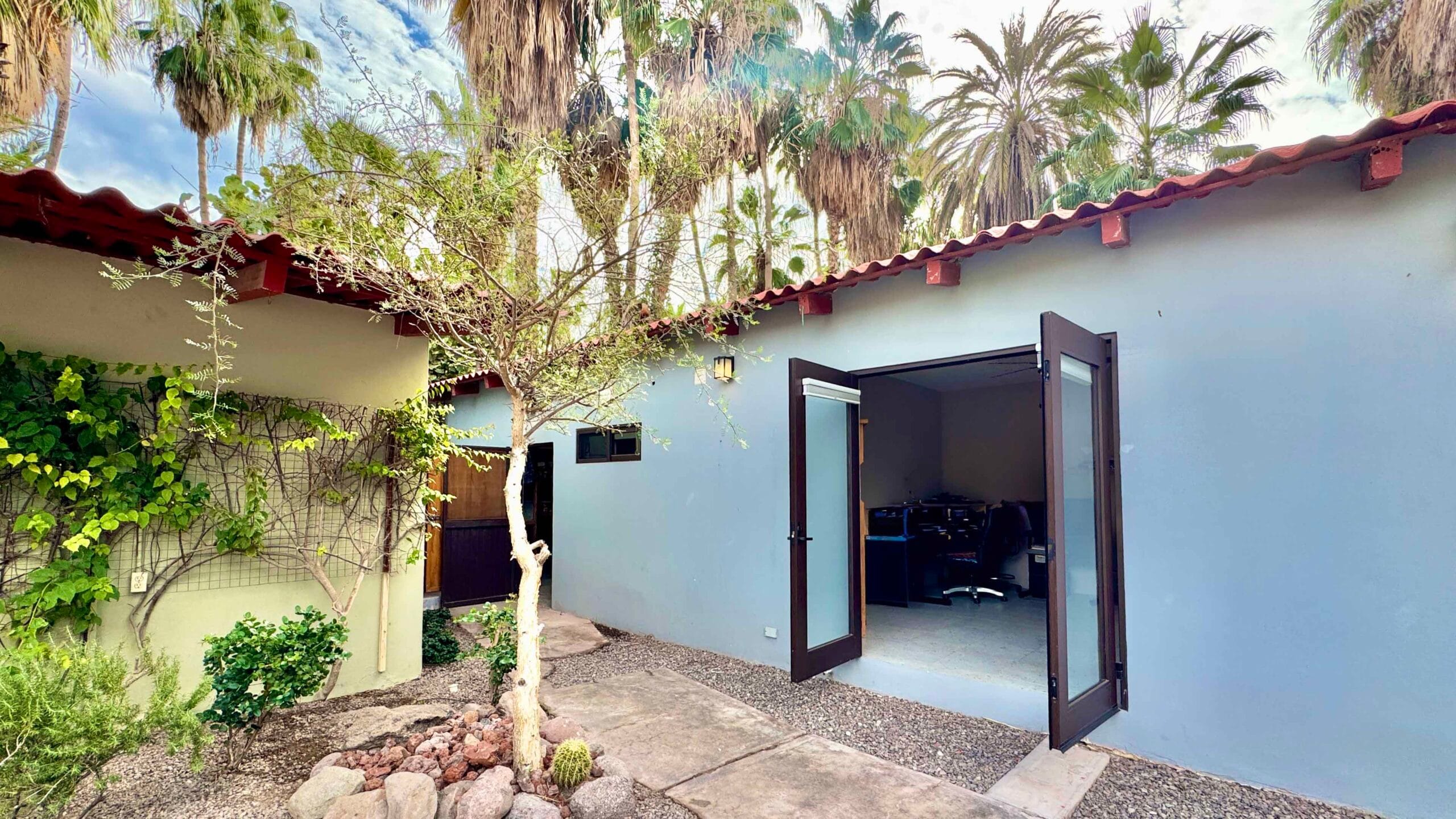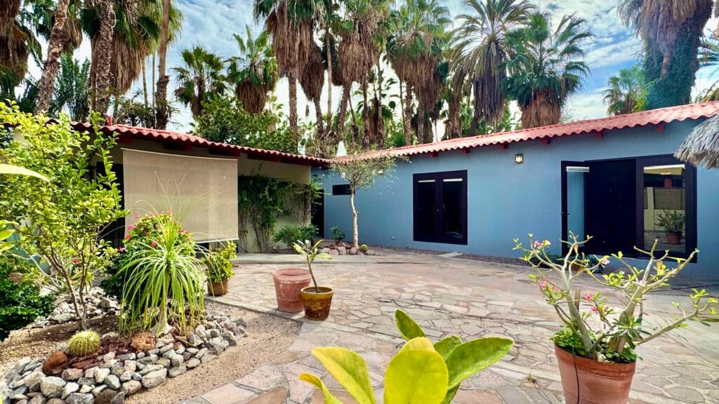 The single-story main residence is turnkey and comfortable, featuring upgraded finishes and a beautifully appointed kitchen that anchors the living space. Indoor and outdoor areas flow naturally into a private courtyard garden designed for relaxed entertaining.