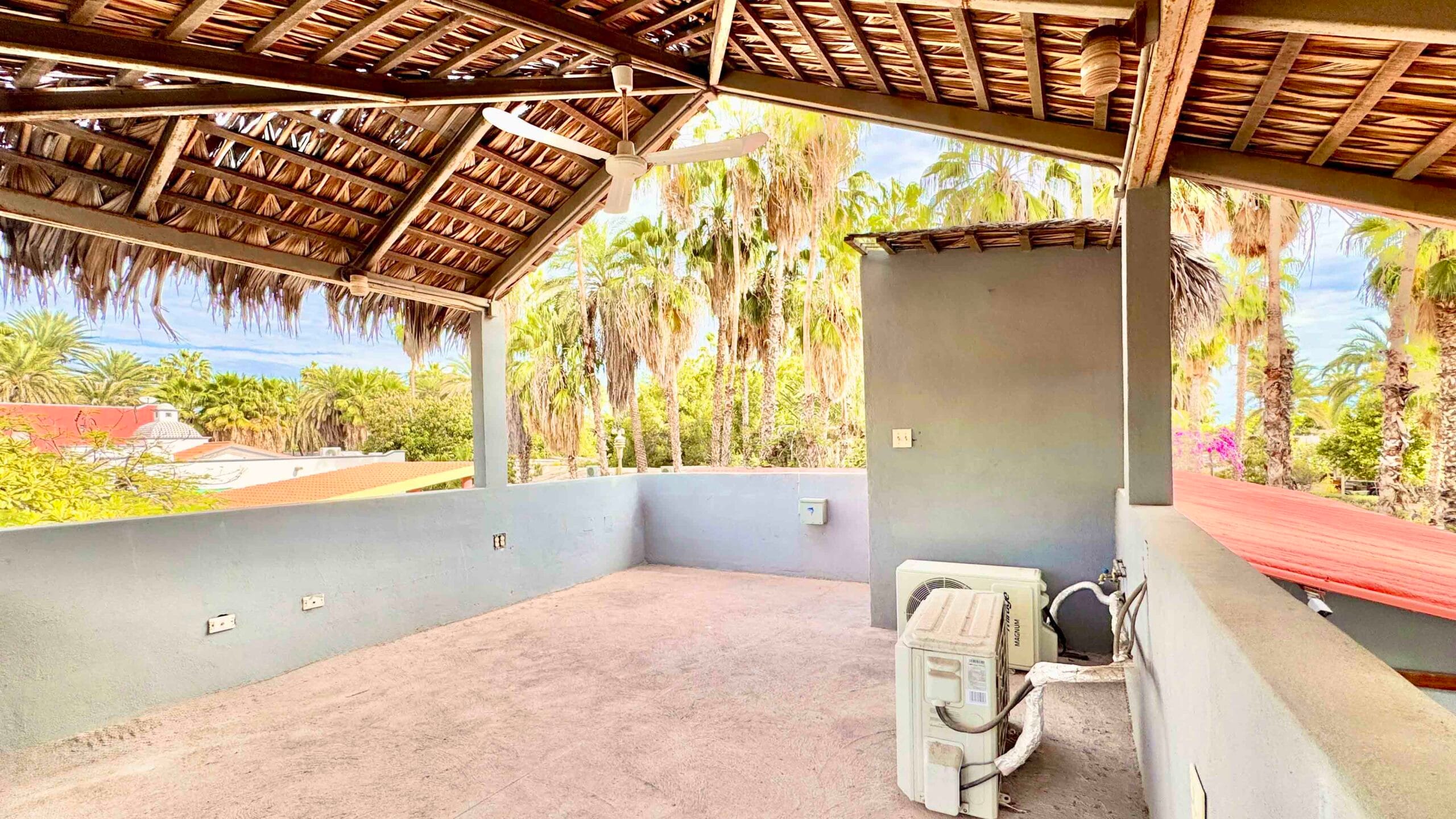 A charming viewing tower with a half-bath rises above the gardens, offering peaceful mountain and palm-canopy views: an ideal place to begin the day or unwind as the light softens over town.