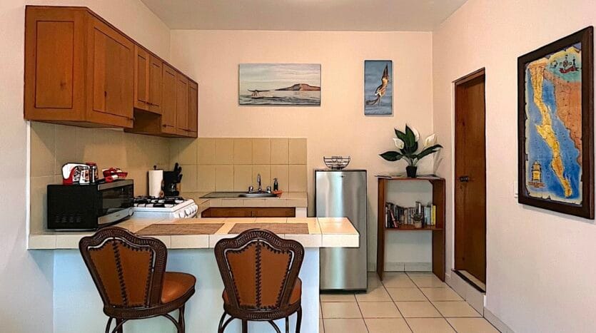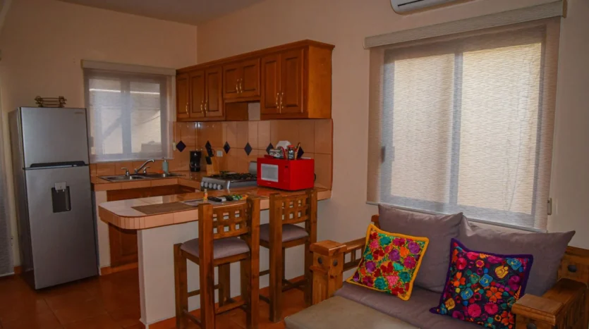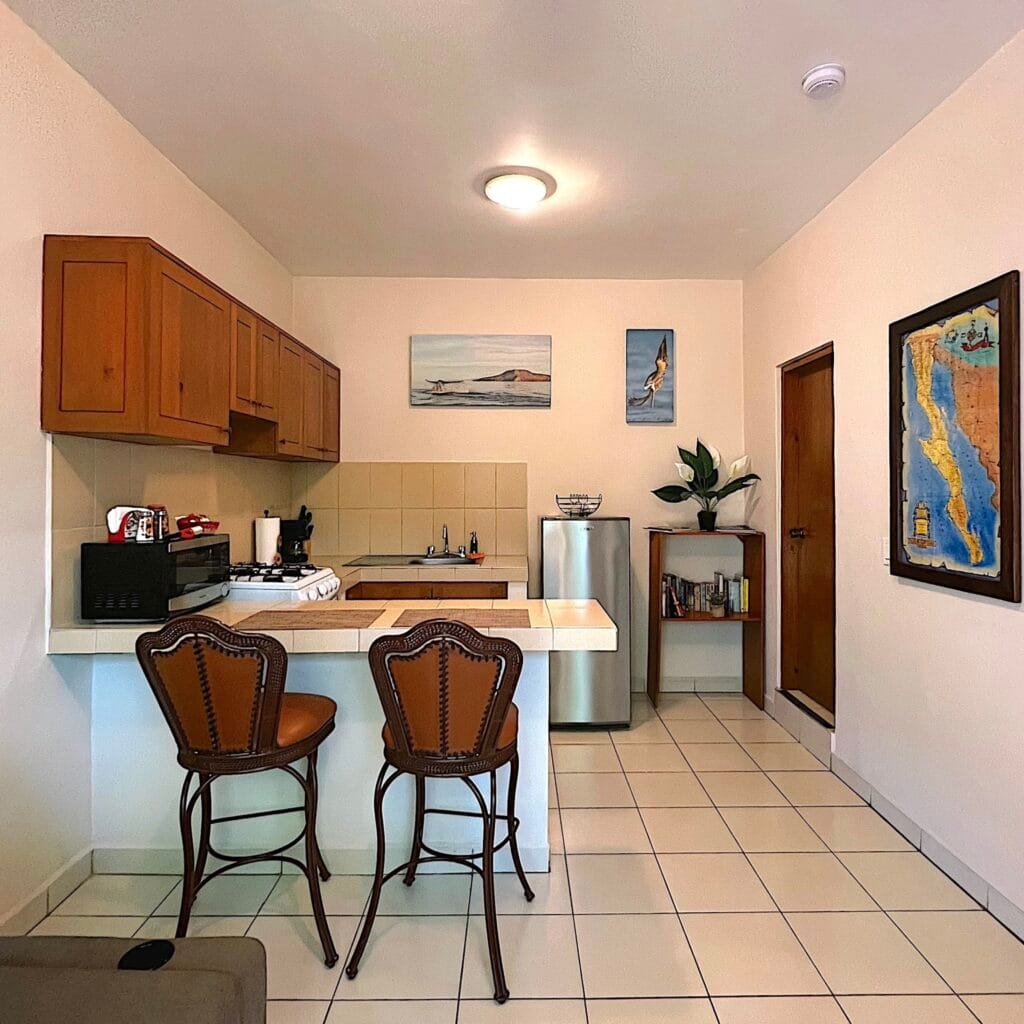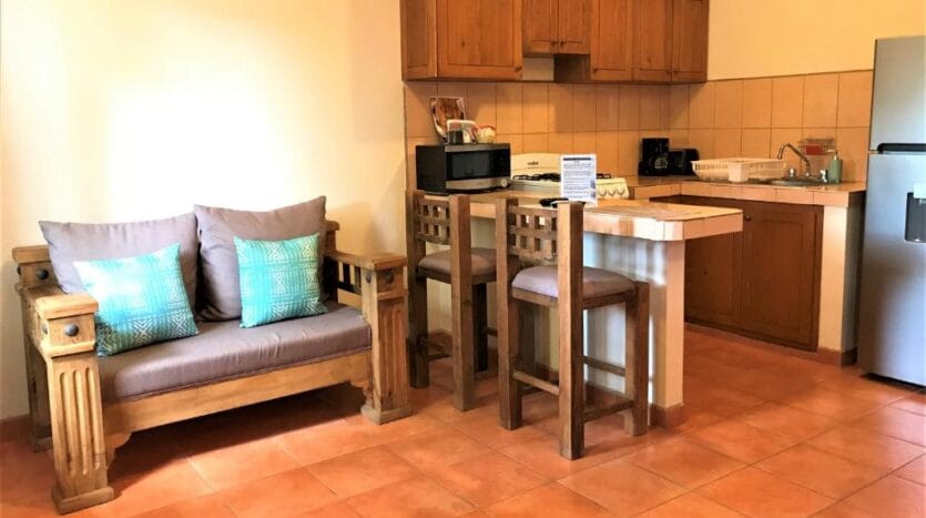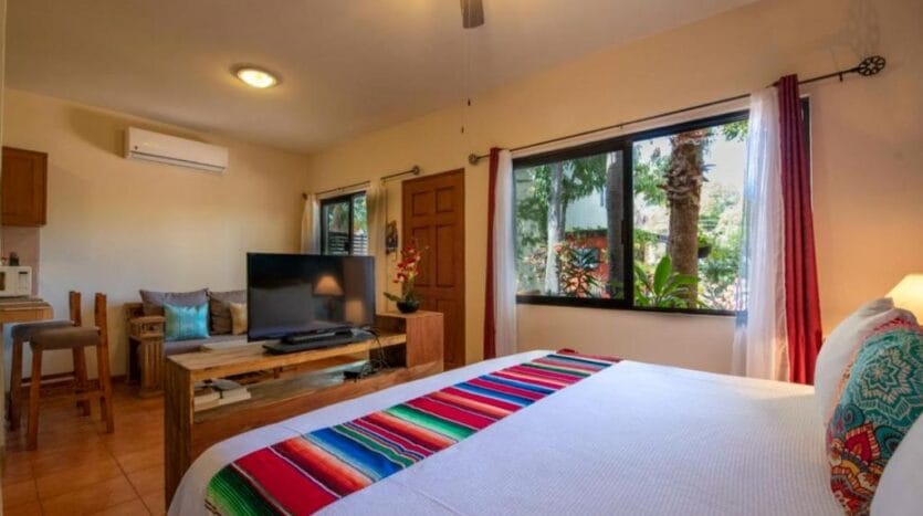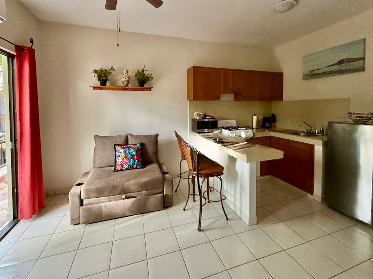 Casa Mangos consists of 6 units: 5 modern king studios, and 1 two bedroom apartment, each with: Guest-ready furnishings and amenities. Sleeping area + sitting space. Full private kitchen