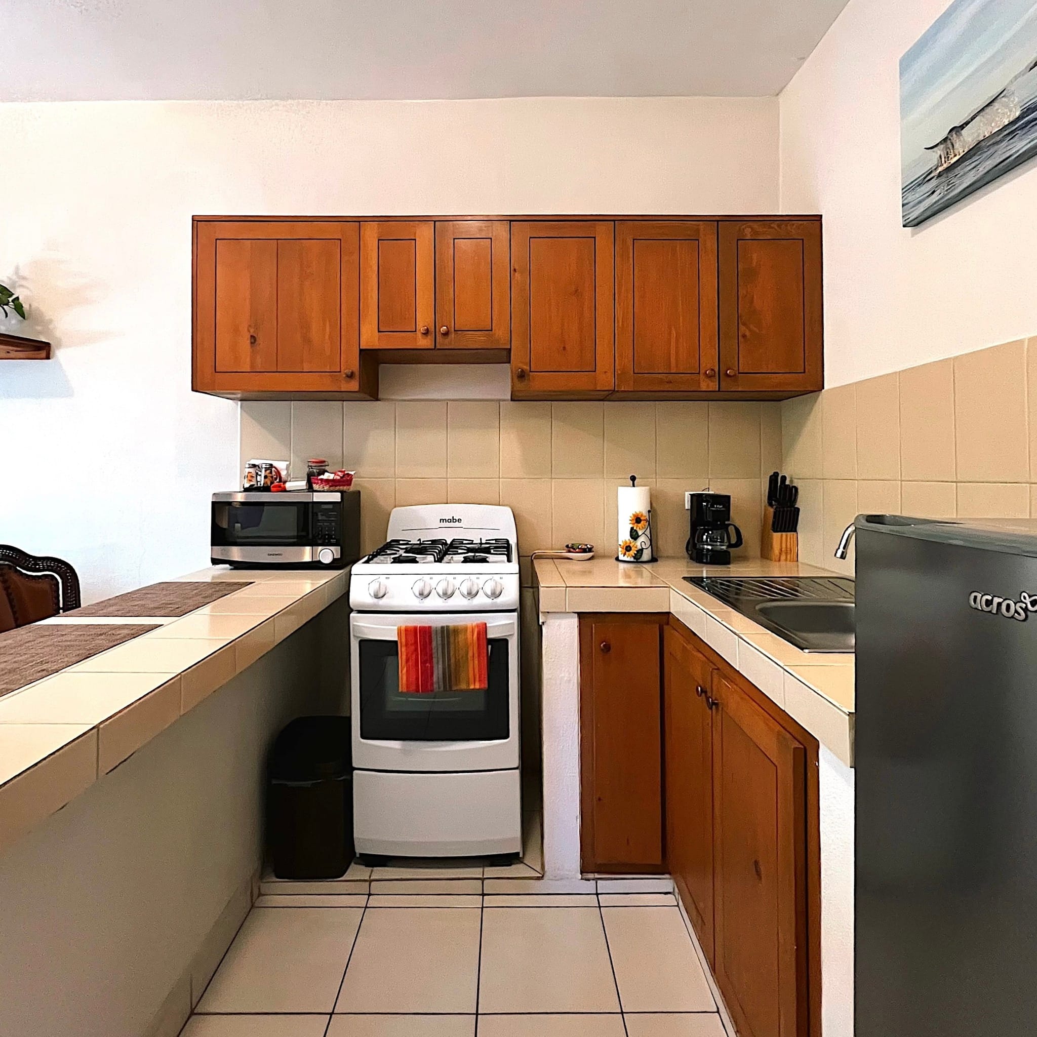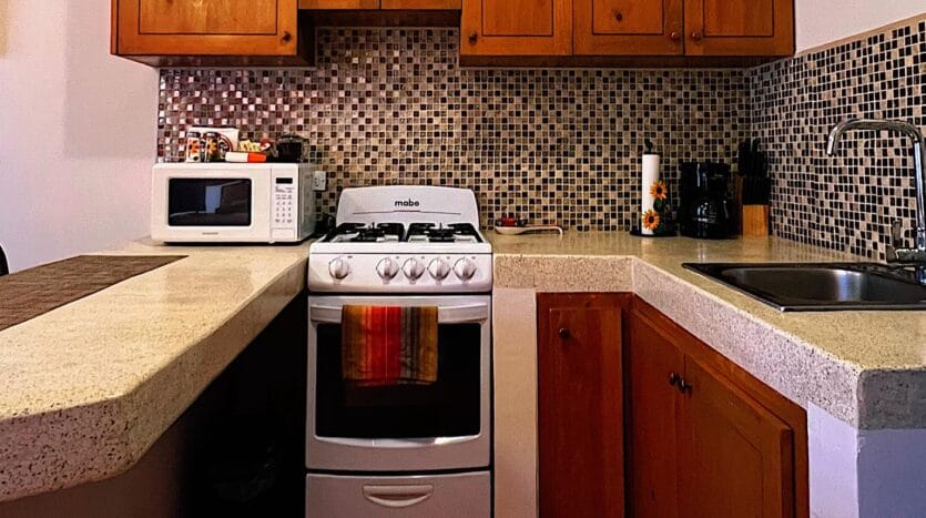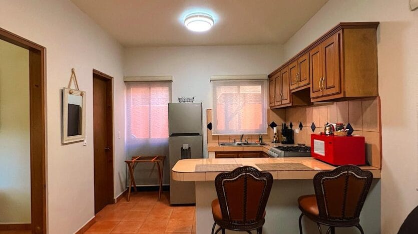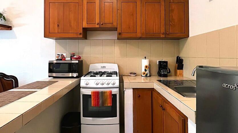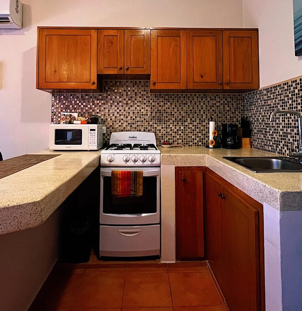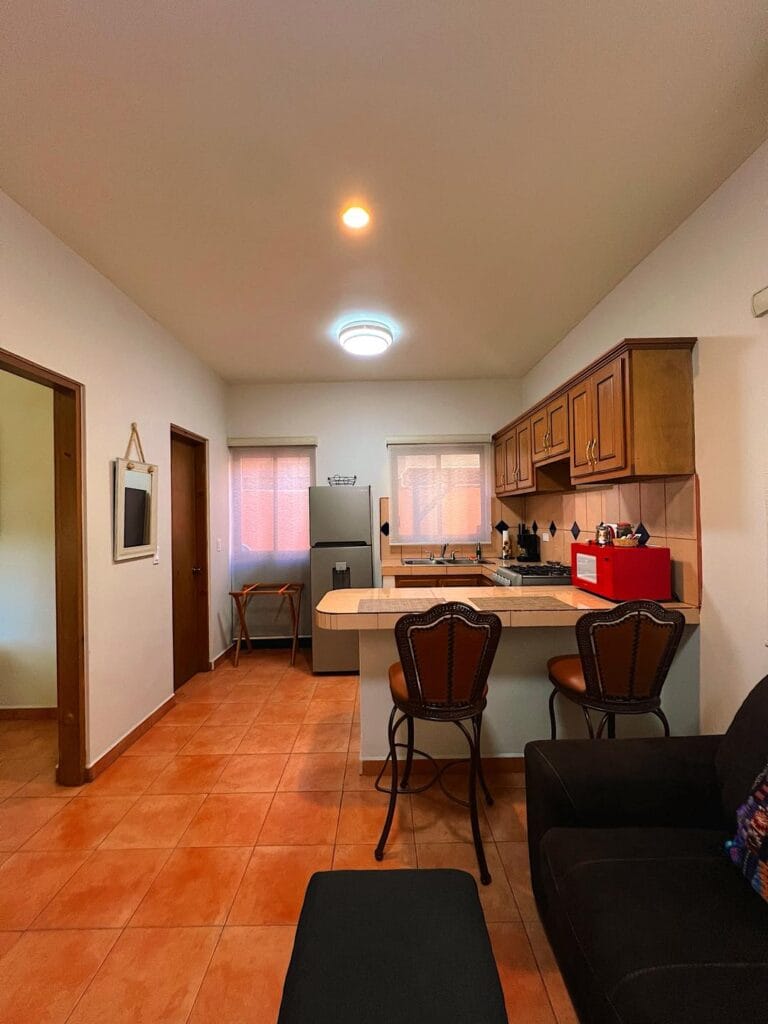 Casa Mangos consists of 6 units: 5 modern king studios, and 1 two bedroom apartment, each with: Guest-ready furnishings and amenities. Sleeping area + sitting space. Full private kitchen