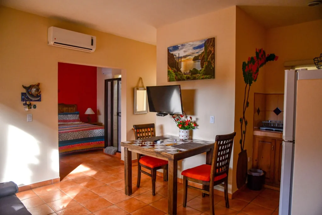 Situated on a 430 m² (4,628 sq ft) commercially zoned lot with modern construction completed in 2017, Casa Mangos combines the romance of Loreto’s walkable historic downtown with the strength of a proven revenue-generating operation. With five furnished studio suites, a spacious two-bedroom residence, trained staff, and established systems already in place, it delivers immediate continuity today – and clear upside for a buyer ready to elevate performance and expand profitability over time.
