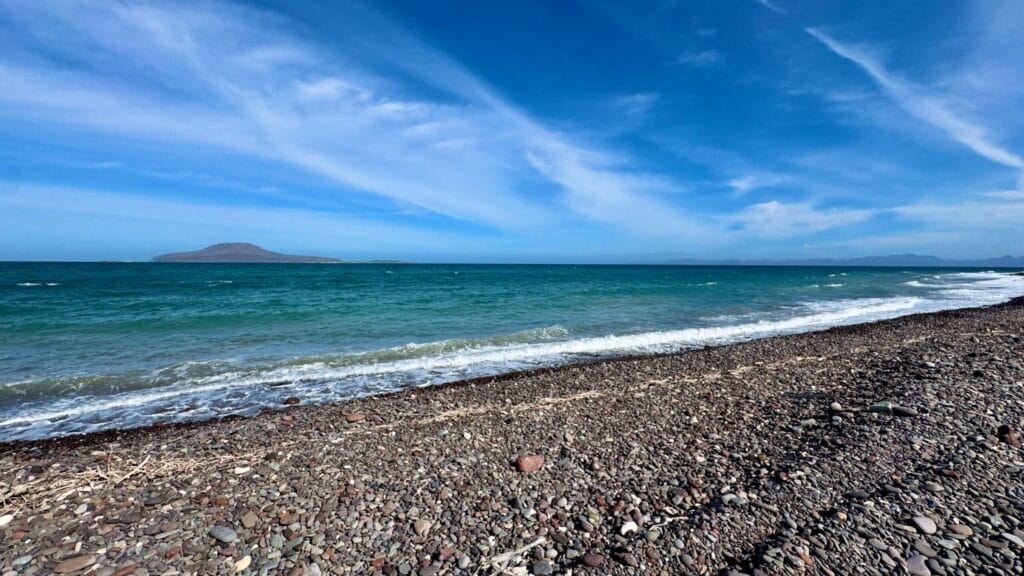 Located in El Bajo, approximately four miles north of historic Loreto, this titled 3,086 m² (approx. 0.76-acre) beachfront parcel stretches from the coastal access road all the way to the water’s edge. From here, your view lines sweep across open sea toward Isla Coronado, while the Sierra de la Giganta rises dramatically behind you: desert and ocean in perfect contrast.